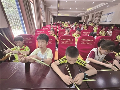 衡阳晚报讯 (文/图 李境) 端午前夕,蒸湘区中平小学、大立实验小学先后开展“棕编艺术进校园”主题活动行。两校的《衡阳晚报》小记者,亲手体验棕编技艺,制作栩栩如生的棕编小鱼,感受非遗手工艺的独特魅力。