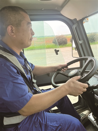 可比起冬天的刺骨严寒,现在的高温酷暑更让他有苦难言。烈日下,机坪表面温度超过50℃,特种车辆驾驶室堪比“大蒸笼”,方向盘晒得完全不能碰,“还不能戴手套,因为会更热。”