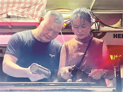 妻子覃惠妹,正是摊名中的“小妹”,来自广西。不少食客初时以为“阿哥和小妹”是兄妹档,细问方知是夫妻档。“按广西风俗习惯,‘阿哥’和‘小妹’是亲昵称呼。”欧爱国笑道。