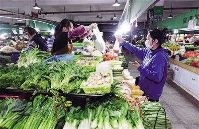3月9日,在广西南宁市滨湖路一家农贸市场,市民在选购蔬菜。■新华社发