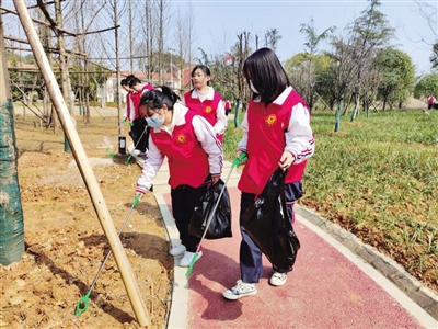 在湘江沿岸,师生志愿队挽衣袖、弯下腰、俯下身,捡起一片片垃圾,种下一棵棵小树,发放一张张文明礼仪宣传单,累得满头大汗却乐在其中。在马路边,许多“小雷锋”在宣传雷锋精神的同时,将自己精心绘制的禁毒、控烟、防溺水、文明礼仪等主题手抄报赠送给市民,别样的方式尽显孩子们的用心。