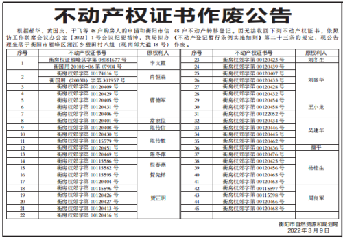 不动产权证书作废公告