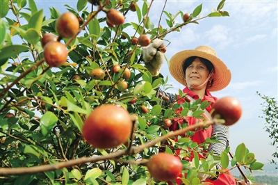 11月6日,衡东县高湖镇村民在采摘油茶果。该县依靠当地山林地理优势,大力发展油茶产业,是全国油茶产业发展重点县,全县现有油茶林76万亩。金秋时节,油茶果进入采摘期,当地村民趁着晴好天气采摘、翻晒油茶果,山村一派忙碌的丰收景象。 ■曹正平 颜伶俐 摄