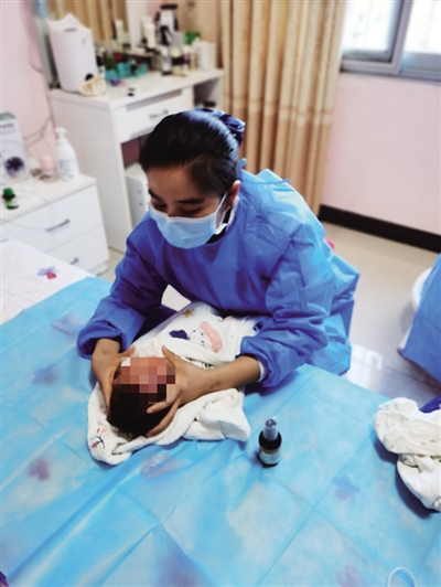 该院儿科副主任肖艳艳、护士长王姿及妇产科主管护师刘艳春按照预约时间来到新生儿家中,准时为孩子进行了黄疸监测、专业的新生儿检查和护理。