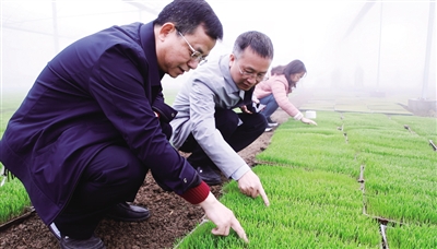 在耒阳市小水镇畔塘村集中育秧基地,第一批培育的秧苗已经冒出两寸嫩芽。“我们是3月10日播的种,这个大棚播种了15000盘,可以种400多亩大田,相比去年增加了近200亩。”耒阳市丹京农业专业合作社负责人李国辉告诉记者,他今年计划种植1400亩大田,预计还有两周左右就可以抛秧了。