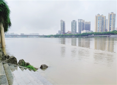受强降雨及上游来水影响,湘江西岸风光带解放路亲水平台已被江水淹没。■全媒体记者 胡亚华 摄
