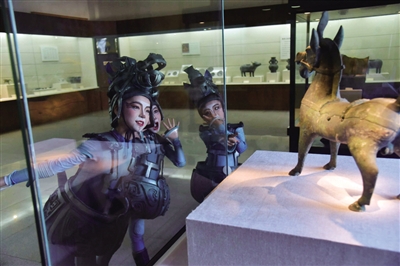 小演员们第一次见到青铜马。 ■唐国华 摄