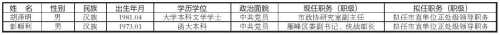 为了加强对干部选拔工作的监督,提高识别和任用干部的准确程度,现对市委常委会议研究决定的下列2名拟任人选进行任前公示: