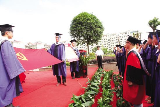 6月9日,南华大学第二临床学院为2011届硕士毕业生举行毕业典礼,党员硕士生还举行了重温入党誓词活动。图为宣誓现场。 曹正平 张晴川 摄
