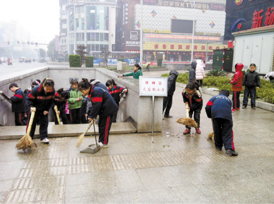 3月14日上午,雁峰区天后街小学利用社会实践课时间,组织学生开展了一次以“雷锋精神进课堂”为主题的社会实践活动。在蒸阳南路与解放大道的地下通道旁,孩子们冒着细雨,分工有序,有的扫垃圾,有的捡纸屑,还有的擦栏杆,个个忙得不可开交,过往的市民纷纷拍手叫好。 周 力 摄