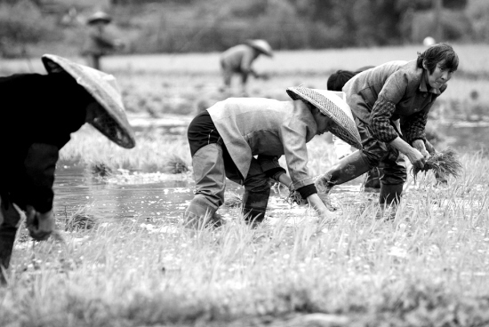 4月23日,衡阳县演陂镇石塘村村民在栽插早稻秧苗。据了解,该县今年确定早稻生产面积71万亩,截至目前,全县已移栽15万余亩,占总面积25%,整个早稻栽插工作预计在5月10日前将全部完成。 本报记者 彭斌 摄