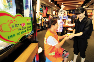 当天,团市委还发起“为环卫工搭建‘清凉驿站’”活动,号召沿街爱心商家和单位为环卫工人免费提供休息点。为方便环卫工人识别,还统一印制了爱心卡张贴在参与门店、单位醒目位置。“清凉驿站”活动得到了广大商家和单位的积极响应,倡议书发出不到两天时间,就有100家门店和单位加入。“一杯开水、一把椅子,能休息,真正让我们感到高兴的,是大家友善的态度。”环卫工肖爱云大姐激动地说。