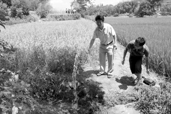 7月30日,西渡镇正大村梨树组村民利用机井灌溉农田。旱情发生后,西渡镇党委、政府采取以奖代补的方式,发动群众打机井,挖沙凼,鼓励农民打井自救。到目前为止,全镇共打机井78口,在一定程度上缓解了面临的旱情。■王 勤 摄