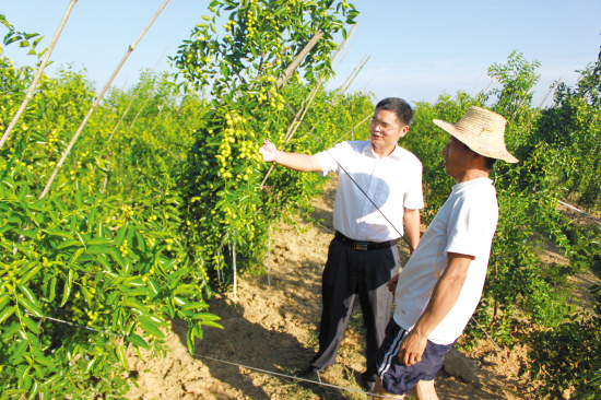 正是酥脆枣大量挂果成熟的季节,祁东县林业局技术干部主动下到种植大户的种植园,指导种植户做好丰产护理保育工作。近年,祁东县计划新增枣业种植面积10万亩,以扶持枣业发展带动农民发家致富。 ■启 之 摄
