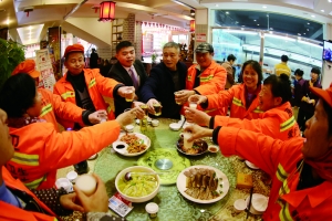本报讯(记者 魏臻臻) 2015年12月30日,由市总工会、市工商联、市城管执法局、市环卫处工会、市餐饮行业工会共同推出的“迎新春·心连心”大型慰问环卫工人公益活动在全市59家餐馆同时举行。
