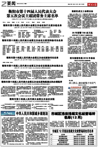 衡阳日报 版面二 A02 2016-01-111 2016年01月11日 星期一