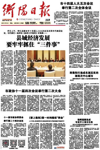 衡阳日报 版面一 A01 2016-01-131 2016年01月13日 星期三