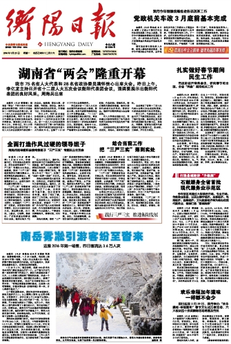 衡阳日报 版面一 A01 2016-01-251 2016年01月25日 星期一