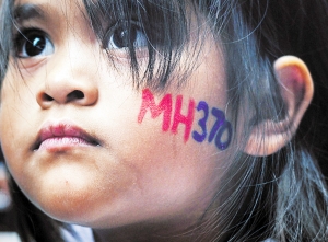 马航MH370航班失踪两周年之际,马来西亚举行纪念活动。参加活动的一名女孩脸上涂上“MH370”的字样。