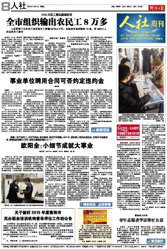今年春节前夕,为了确保春运工作的顺利进行,我市各级劳动保障站对民工返乡、返岗时间人数进行了调查摸底。根据调查情况,通过向民工发布手机天气短信和春运信息、及时与运输部门联系、调集车辆进行有序疏导等针对性工作,避免了突发事件的发生。