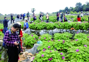 “唯有牡丹真国色,花开时节动人心”。近期,常宁市大义山中的牡丹迎春绽放,5万余游客周末接踵而来赏花、踏春,大家拿起手中的相机、手机,争相与牡丹合影。