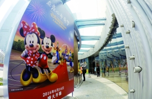 3月28日,位于上海浦东陆家嘴的迪士尼商品官方旗舰店外立着迪士尼度假区即将开幕的广告牌。当日,上海迪士尼乐园开始向公众发售门票,门票分为平日票和高峰日票两种,平日票370元,高峰日票499元。据悉,上海迪士尼度假区将于6月16日开幕。