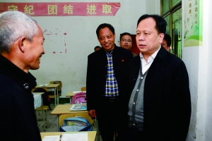 市委书记周农考察常宁塔山乡西江村时与希望小学老师亲切交谈 ■本报记者 黄 沐 摄