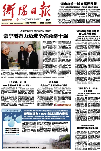 衡阳日报 版面一 A01 2016-04-081 2016年04月08日 星期五