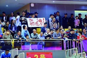 铁杆粉丝举起 “加油!初恋们”的标语牌