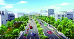 根据规划,45米的红线宽度按照5米人行道、8米非机动车辆、4米机非分离带、23米机动车道、5米中央分隔带的形式布局。