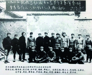 参加湘赣边界秋收起义的部分同志在延安合影,前排左五为谭冠三