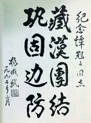 杨成武为谭冠三题写的“藏汉团结 巩固边防”