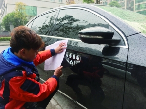 昨日上午9点多,记者在一家汽车专修店看到,专修店员正在给公务用车喷涂标识。十多分钟后,一辆黑色的公务用车正、副驾驶车门上多了“公务用车”标识,非常醒目。当天上午,该店完成了10辆公务用车的标识喷涂。