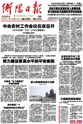 衡阳日报 版面一 A01 2016-12-211 2016年12月21日 星期三