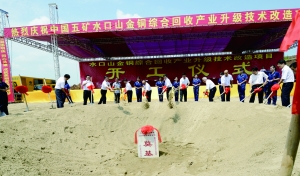 因种种原因,水口山的铜冶炼一直采用传统工艺,规模小,烟尘大。直到2010年初,公司抓住中国五矿在湘打造铜冶炼基地的重要契机,经过多方努力和积极争取,2010年12月,中国五矿投资30亿元的金铜项目(水口山金铜综合回收产业升级技术改造项目)成功落户水口山。2013年8月26日,金铜项目开工,经过两年多的建设,一期工程于2016年5月底竣工投产,这个承载着几万水口山人梦想和期盼的希望工程最终变为现实,百年铅都水口山的发展由此翻开崭新一页。项目采用具有自主知识产权的“水口山炼铜法”。一期建成投产后,年产阴极铜10万吨,黄金2.4吨、白银200吨,处理铜物料50多万吨,新增营业收入60亿元,利税近5亿元,等于再造一个“水口山”。