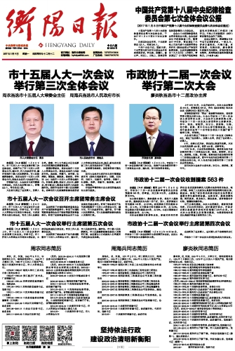 衡阳日报 版面一 A01 2017-01-091 2017年01月09日 星期一
