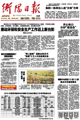 我市2016届省级文明县城是:衡东县;省级文明村镇是:衡南县咸塘镇、衡山县永和乡、衡东县白莲镇马房村、祁东县归阳镇、常宁市水口山镇大渔村、雁峰区岳屏镇兴隆村、石鼓区角山乡三星村、蒸湘区雨母山镇临江村;省级文明单位是:衡阳市委宣传部等36个单位;省级文明标兵单位是:衡阳市人民检察院、衡阳市审计局、衡阳市第一中学、衡阳市水文水资源勘查局、湖南省核工业地质局306大队、衡南县地方税务局、雁峰区人民法院、蒸湘区国家税务局。