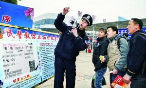 公安民警正在教市民识别假车票