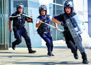 市公安局“反恐演练”中闻警出击的公安特警