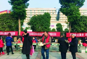 市司法局工作人员正在街头给群众宣讲法律知识