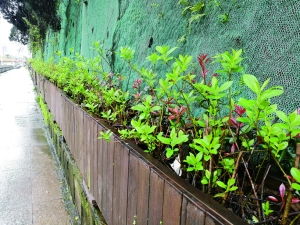 连日来,园林职工冒雨顶寒在解放西路护坡上焊接钢架。昨日上午,在解放西路62号地段,记者看见连排方钢整齐稳固在护坡上。现场施工负责人告诉记者,护坡总长约170米,高2.7米至3米不等,花墙面积400余平方米,方钢焊制而成的钢架是花墙的主骨架,骨架之上还将设置成排铝合金花架,将分别栽植金边黄杨、桂花及杜鹃等彩叶花灌木,与护坡之上花缸及花厢,有机组合成色彩多样的立体花廊。施工方表示,将抢赶在4月中旬之前,“编织”好这扇花墙。