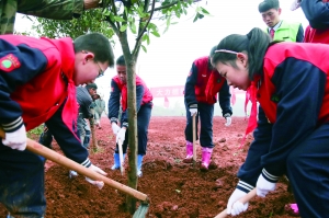 学生积极参与植树栽绿活动 王翟 摄