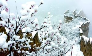 3月24日,北京市怀柔区黄花城水长城迎来降雪,杏花、白雪与长城构成了一幅幅美丽画卷。