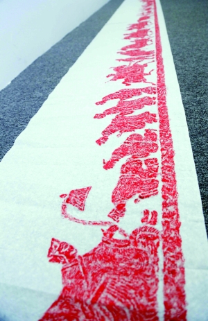 一块砖,一种文化。3月31日下午,由高新区管委会、市文联主办的汉砖铭文画像拓片展在生态壹号美术馆开展。此次展出的31幅作品多为四川出土,内容囊括汉代政治、经济、文化,再现了古代书法艺术和绘画艺术的神韵。展览将持续到4月15日。■王翟 摄