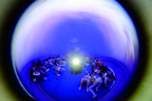 5月18日上午,高新区“科技馆活动进校园”在祝融小学启动。这是高新区第二届校园科技节系列活动之一。现场展出的阿尔法机器人、球幕影院、3D打印技术让学生们尖叫连连,深深沉浸在科技的奇妙魅力中。据悉,此次“科技馆活动进校园”由高新区教文体局和市科技局联合主办,将在该区五个公办小学举行,每个学校展期一天。图为学生正在体验球幕影院。■陈太仰 摄