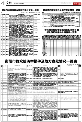 中央第六环保督察组向衡阳市转办的 群众信访举报件分类情况一览表