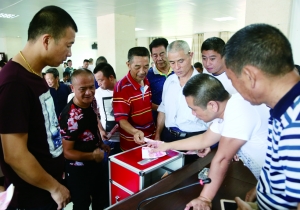 本报讯(文/图 记者 王翟) 7月9日,高新区蒸水办事处二塘村140余名党员、干部自发为村里刚完成肝移植手术的王喜捐款,一个上午,共募集治疗费3.7万余元。