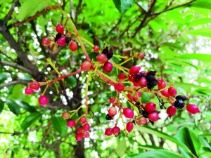 系法国冬青,在城区湘江南路、立新大道、解放大道及船山大道的绿化带均有分布,果实成熟期可持续至9月份