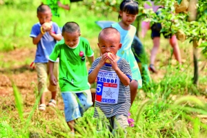 7月23日,“2017中国·衡阳乡村生态旅游节暨相约珠晖采梨乐”活动在珠晖区茶山坳镇启幕。上万名游客涌入美丽茶山坳镇采梨、戏水,共度愉快周末。据介绍,珠晖区茶山坳镇金甲梨园1500亩早熟翠冠梨进入全面成熟采摘期,梨园对市民实行自行开放式采摘。图为孩子正捧着刚刚摘下来的翠冠梨大快朵颐。