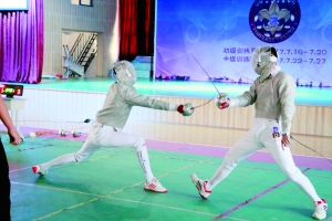 稍加训练,童军们穿上白色的击剑服,戴上黑色的头盔,手持长剑,化身气宇轩昂的现代小剑客。对决开始,剑客们丝毫不敢放松警惕,出剑、挥剑疾如闪电,动作利落,反应丝毫不能迟钝。这是一个充分考验孩子们快速反应能力的项目。